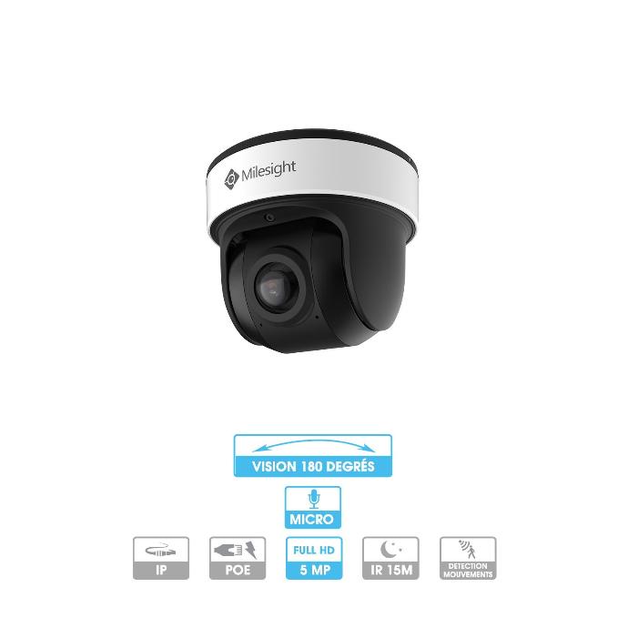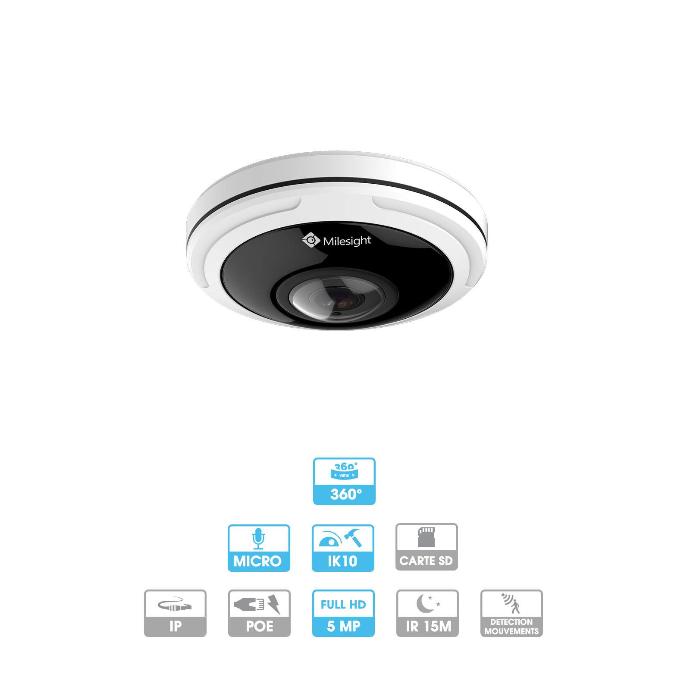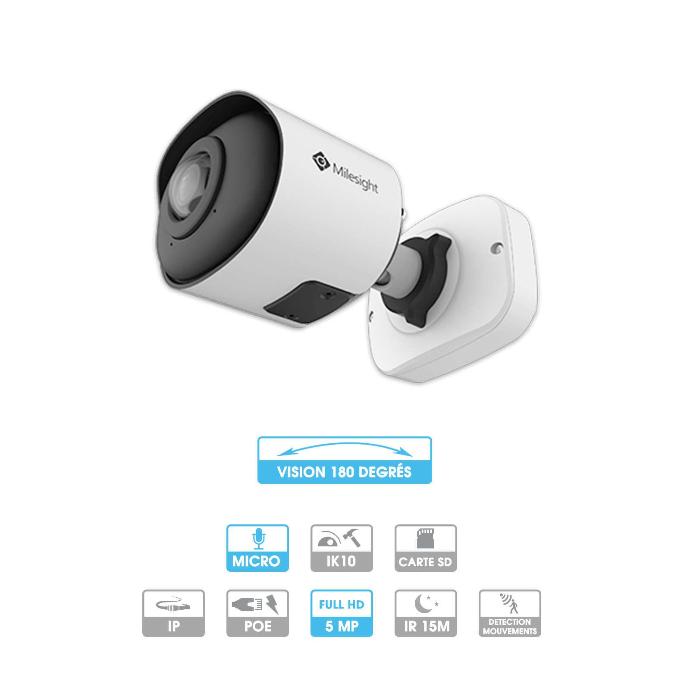 La caméra Milesight panoramique de 180° est parfaite pour les utilisations qui demandent un grand champ de vision ou réaliser des expériences de vues panoramiques. Sa qualité d'image en 5MP va vous époustoufler. La vue panoramique est parfaite, sans déformation ou perte d'image. De plus, avec ses leds infrarouges, vous pourrez voir la nuit jusqu'à 15 mètres.